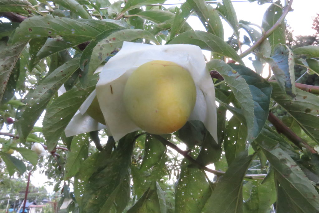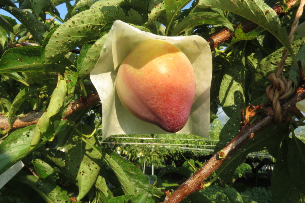 正直に言うと、収穫適時についてはまだ迷っている。熟度が進んで赤みを帯びてくると果肉が柔らかくなるのは他の果実と同様。私の好みが果肉は硬め、ある程度の酸味と甘みを備えていることが優位な選択基準となる。お客様に届いて適時に食べていただくための収穫適時は、どの色味の時が良いか。今後のためにも判断指標が必要だ。