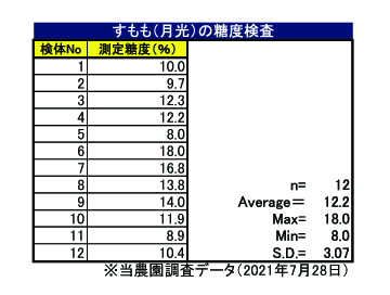 今シーズンの月光の栽培経過については別に記載するとして、ここでは糖度の検査についてデータを示したい。