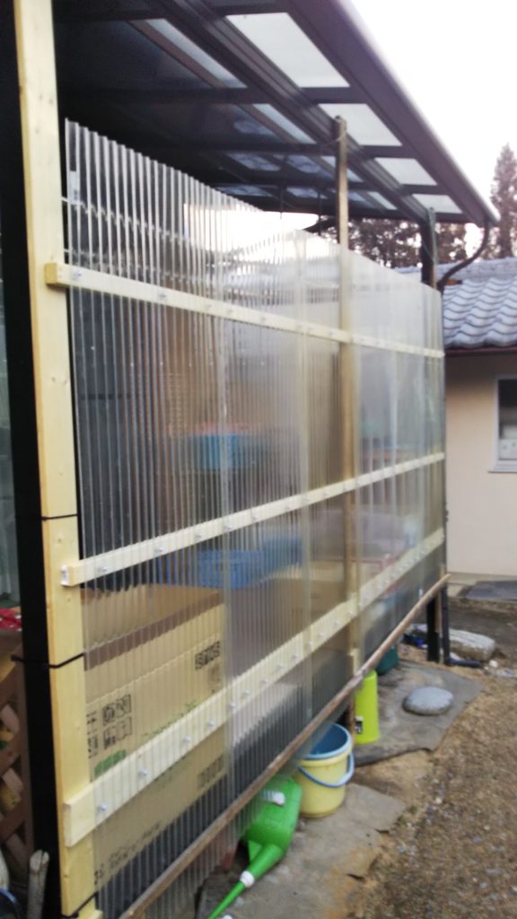 例えばサンダーでもあれば綺麗にできたことだろうが、紙やすり等の手作業では、疲労からくる気持ちのムラがそのまま反映した格好だ。サンデッキ周りには雨風があたり、部分的に腐食していたためか、以前設置した囲いが強風で破壊されてしまった。部分的には廃材を使用して補強した。