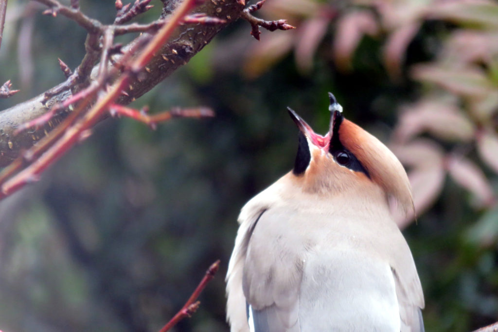 頭というか顔はそっくりな鳥だが、その名の由来か、尾羽の先端の色で識別できる。まるで蛍光色ともいえるような赤のヒレンジャク、そして黄色のキレンジャク。