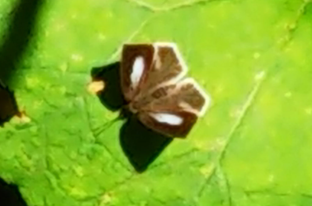 庭の木の剪定をした後の片付けをしていたところ、ウラギンシジミ蝶のメスが飛来した。