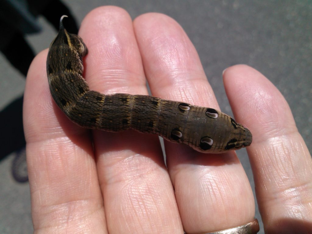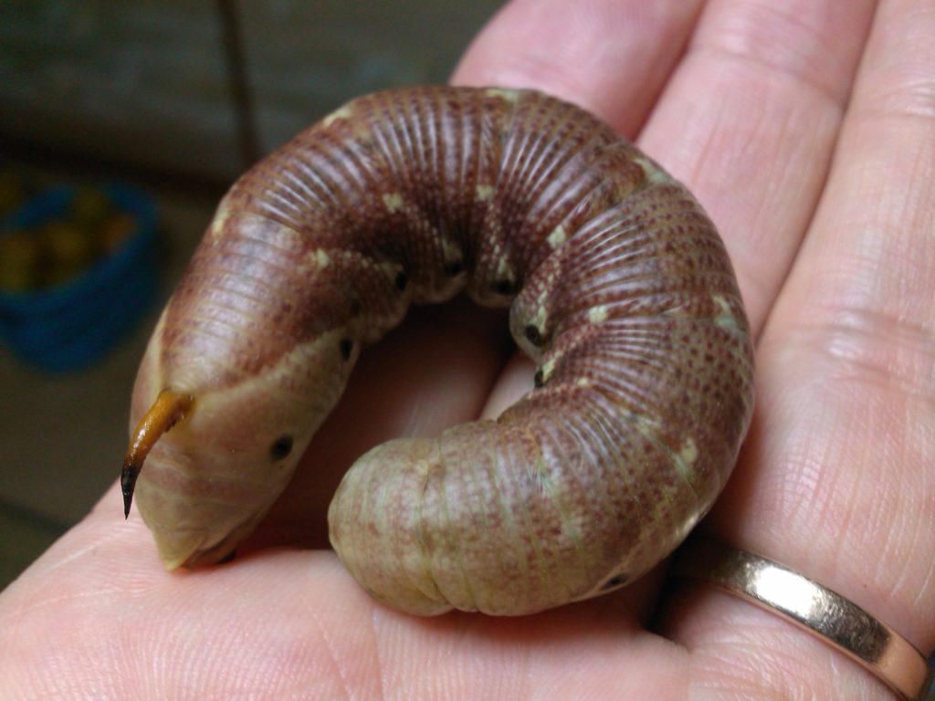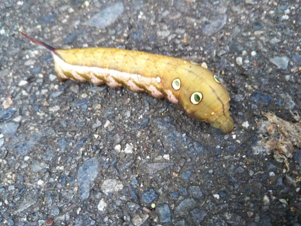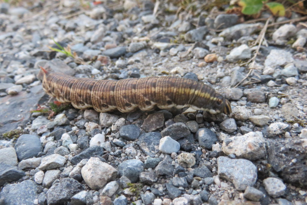 路上で見かけたイモムシをグーグルの画像検索で調べると、鑑別結果に満足できる場合はスズメガの幼虫である頻度が非常に高い気がしてなりません。そうした中、これまでにベニスズメガの幼虫には何度も出会っていたのですが、成虫に出会う機会がなかなかありませんでした。