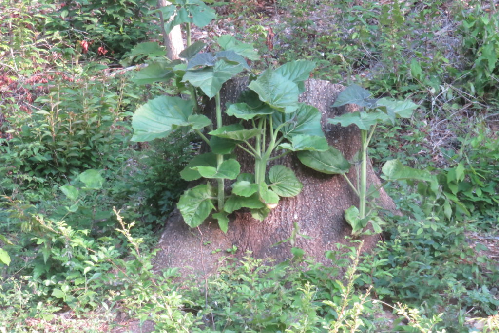 その中でも、大きな桐の木が切られていた事は承知していたが、6月になってその切り株からまた枝が伸びている事に気づき、その様子を観察していた。