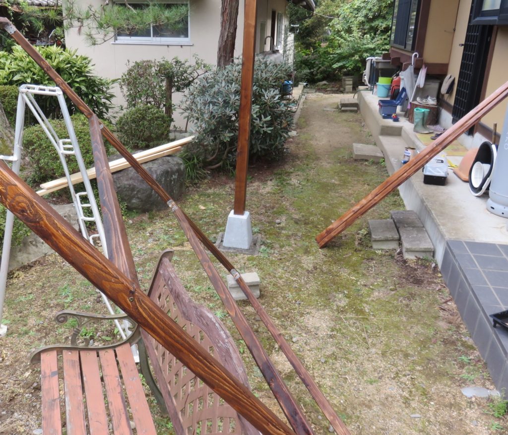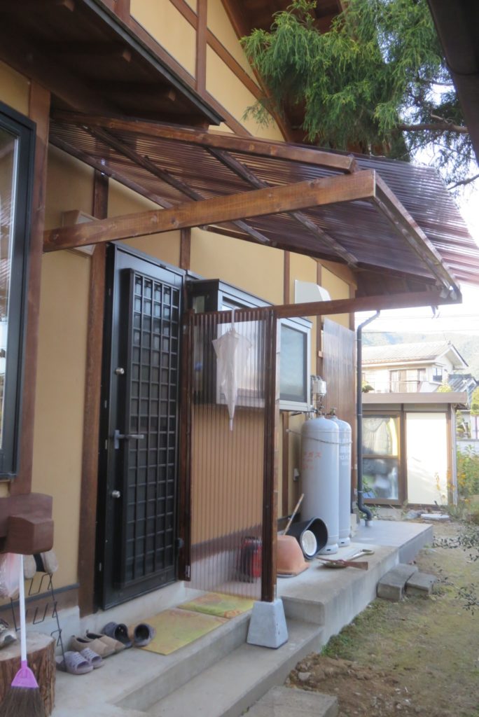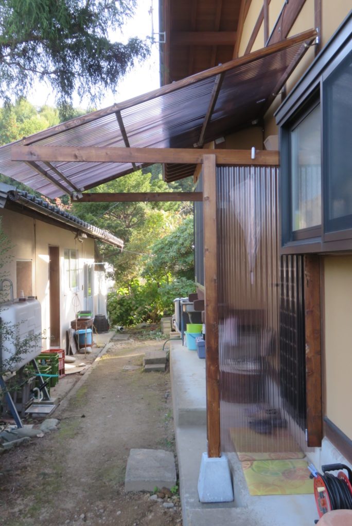 しかし、これがなかなか都合がわるく、勝手口から出て物置にある食材を取りに出る場合だけでなく、かなりな頻度で外に出る事があるのに、外に靴を置いていると雨風にさらされる事を嫌って「屋根をつけて!」となってしまったようです。