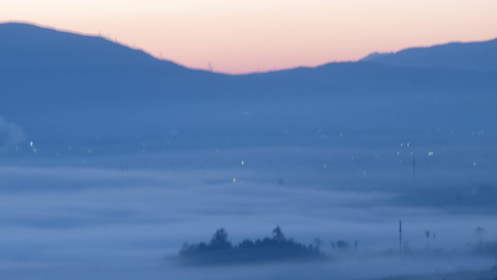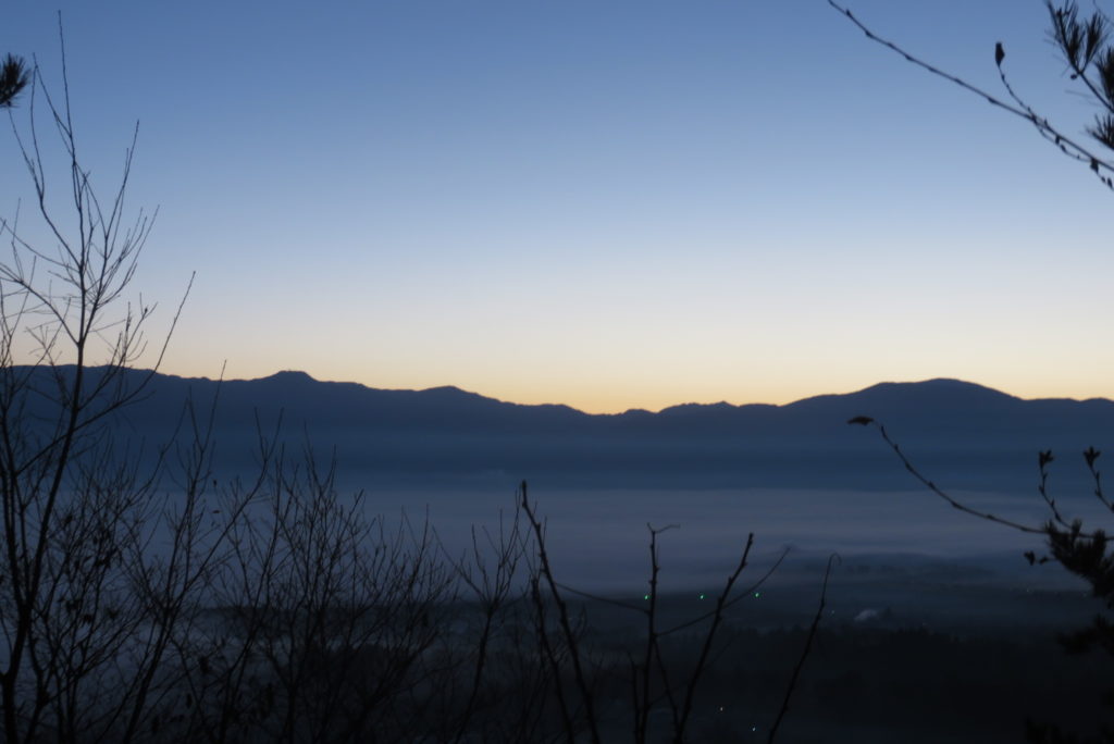 星空だった上空も6時近くなると明るくなる。周りの木々もはっきりとわかるし鳥たちもざわつき始める。