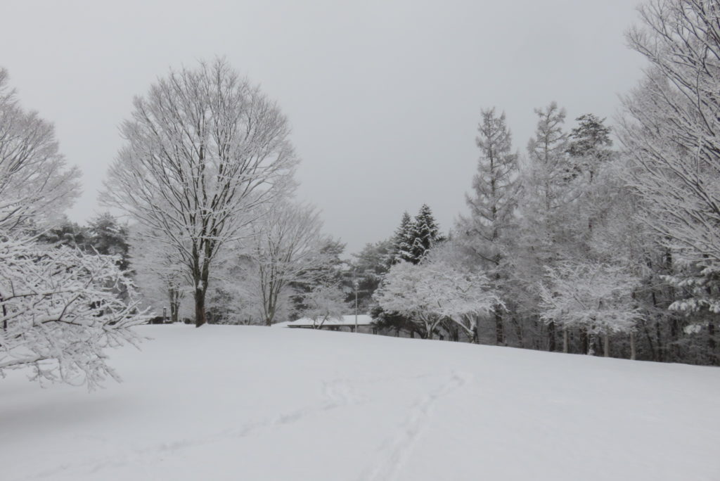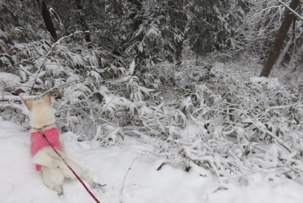 毎週のように登りなれた途中の緩やかな斜面だが、雪がまとわりついて多少息が上がった。家の中では猫のようにコタツで丸くなる(犬の)ミルキーだが、大はしゃぎで駆け回った。
