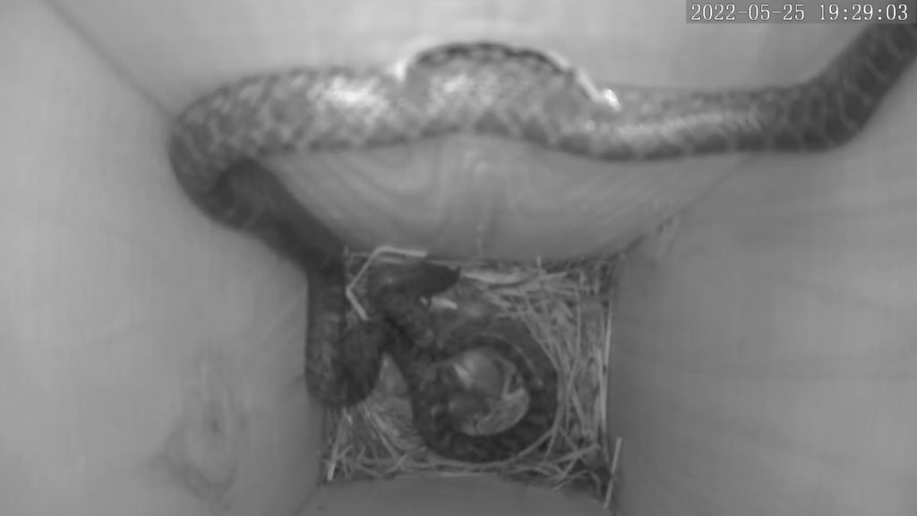 巣箱の中のヒナがすべて蛇に食べられていたのだ!