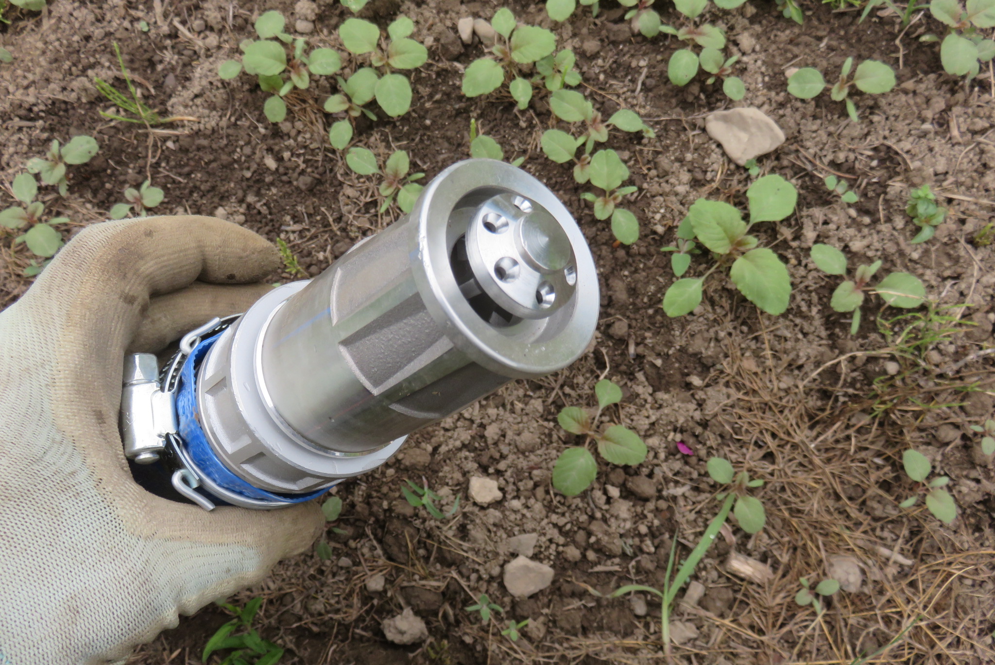 今年から始めた西の畑(と我が家では呼ぶ)は17アールほどだ。たいした面積ではないと思われるかもしれないが、必要な水をバケツなどに汲んで運ぶのは難しい。どうしてもホースを伸ばして必要な所に散水したい。30メートルのホースを購入したが、伸ばしてみると隅までは届かない。水を散布するにはホース先端から拡散させる必要がありそうだ。
