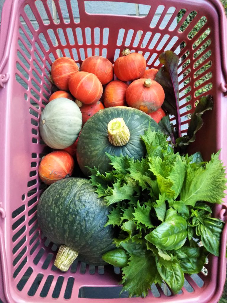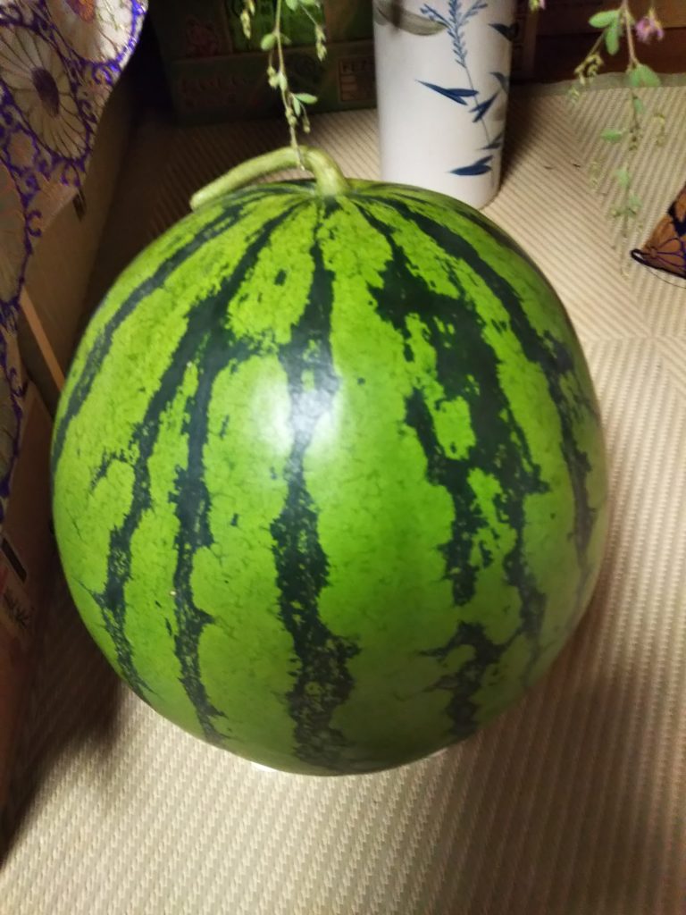 今年の春から始めた西の畑では、今はカボチャ、オクラ、枝豆、西瓜などが取れる。また、梨の喜水の収穫を開始したので、卸売り市場へ出荷した。先月の終わりにスモモの月光を出荷したが、梨としては今シーズン初荷となる。