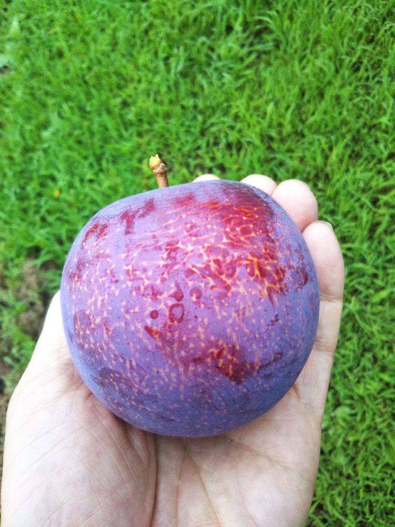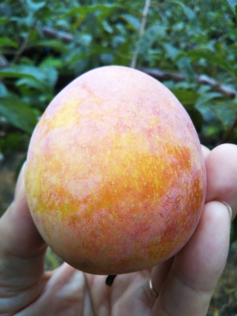すももの中でも貴陽の樹勢はかなり強く、初年度から木の「伸び」が良いばかりか、枝も非常にたくさん出ていた。冬季に実施した剪定では、かなり枝を切ったつもりではあった。しかし木の周辺では太陽の光がさえぎられているといった状態。