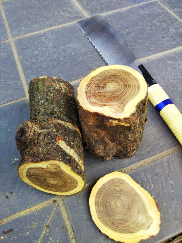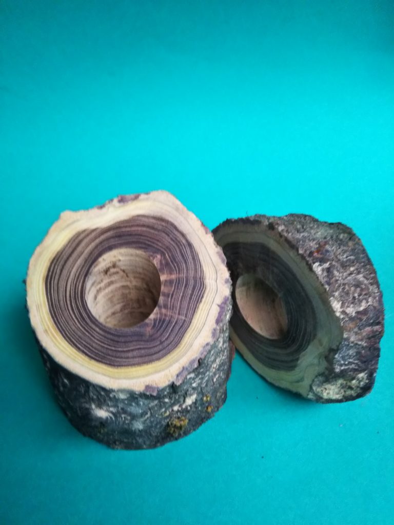 槐(えんじゅ)の木を加工して、「コースター」や「書けない鉛筆」を製作して身近な人に差し上げたところ、キーホルダーにするなどの案と共に、美しい木目を活かして中にボトルのようなものを立てて「一輪挿しにしても面白い」と(勝手に命名)Uさん。