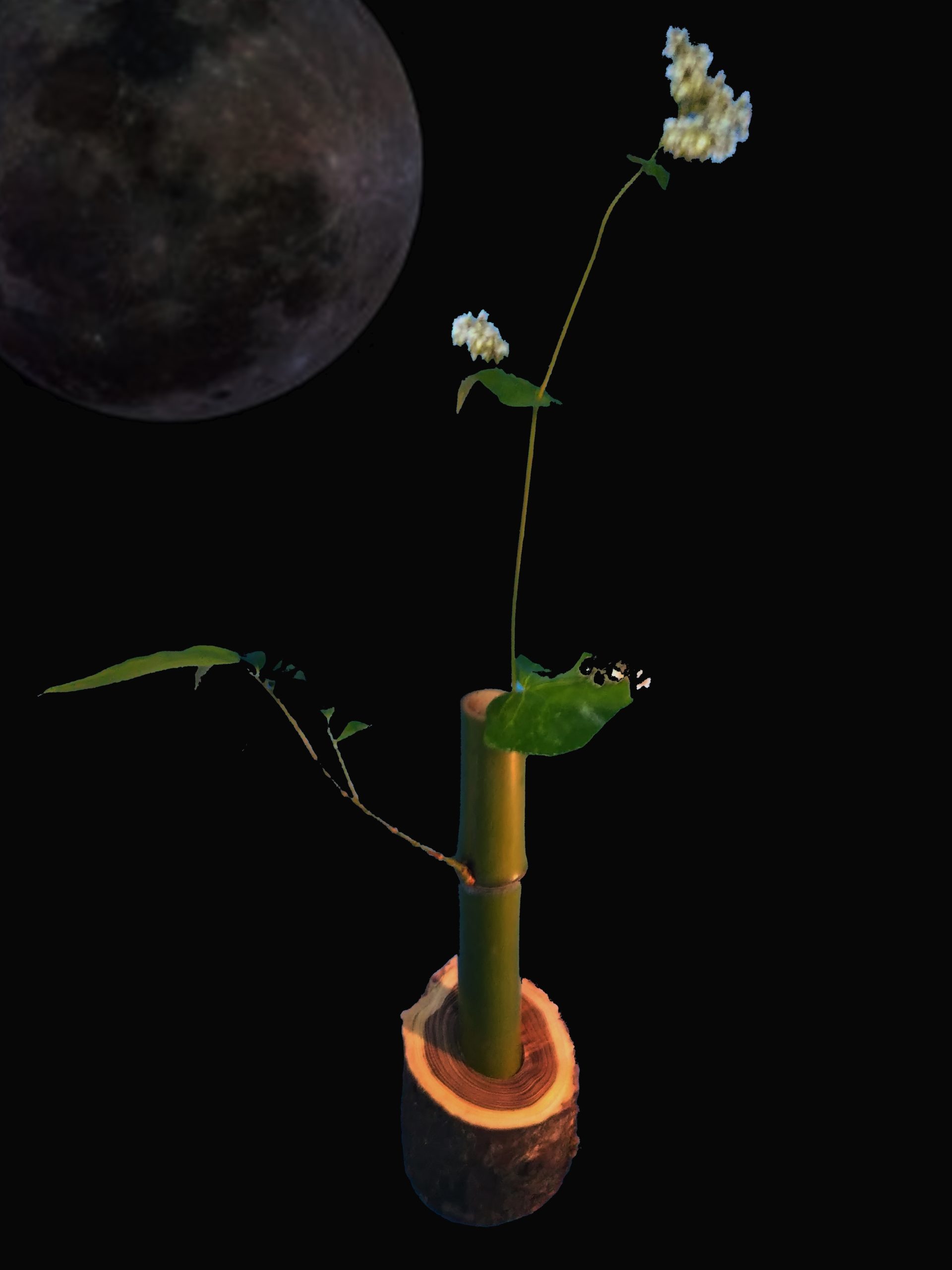 梨の収穫作業の合間や夜間に製作して完成。和の雰囲気漂う一輪挿しになった。はたして、提案者のUさんはどう見るだろうか。