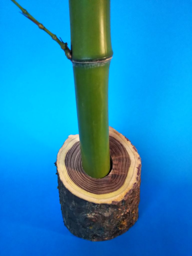 そんな事を考えつつ、いつもの通り朝の散歩をしている途中に、解決策がひらめいた。山の中の道の脇にある竹を見て「そうか、これがボトルの代わりになる!」