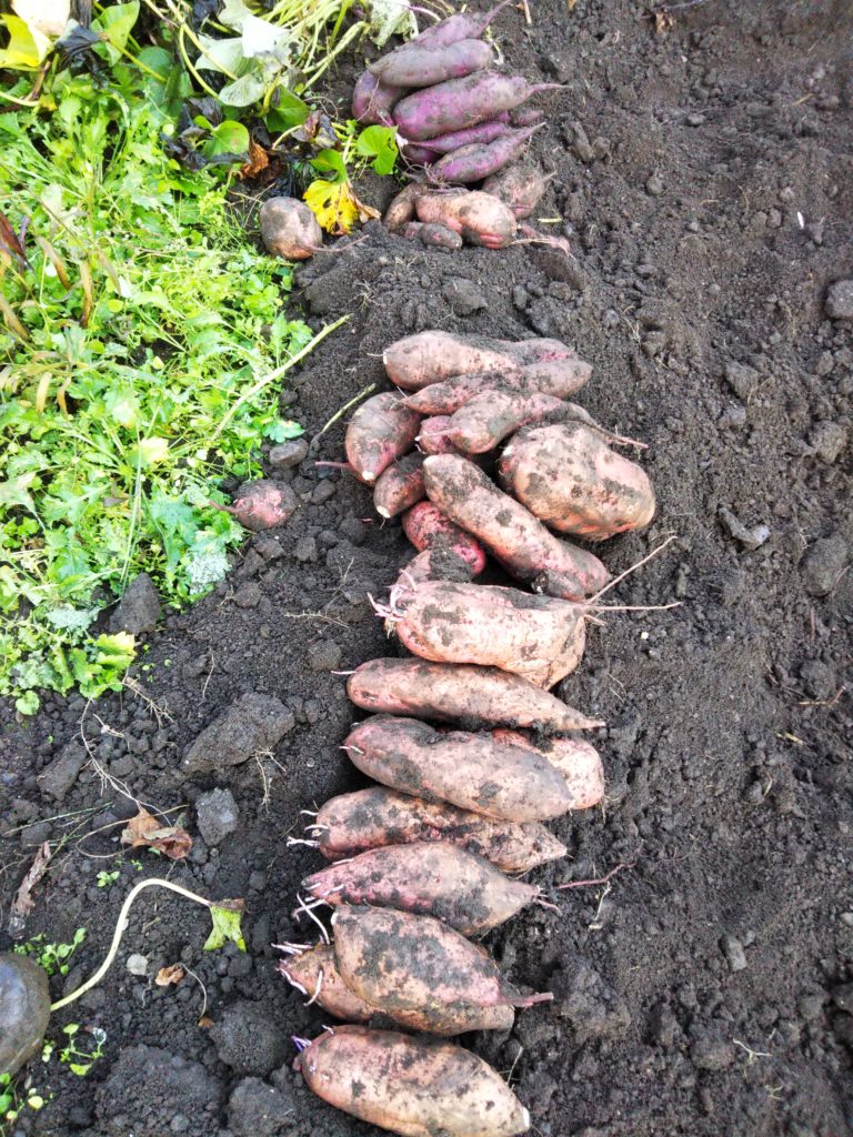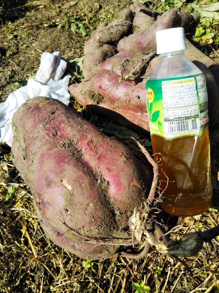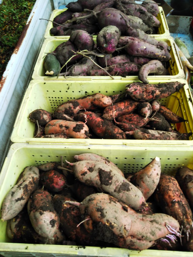 家族皆でサツマイモの収穫をした。梨の収穫が忙しかったため、収穫適期(苗を植えてから約4か月)を1か月近く過ぎている状態だった。そのためか少し大きくなりすぎてしまった。