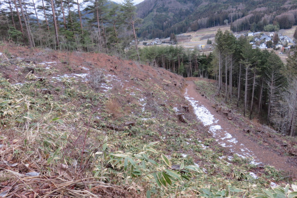 昨年から室山の木、特に松の伐採がかなり進められていたようだ。西側斜面ではかなり広い範囲で松の伐採が進んでいた。東側斜面でも同様で、秋には山の中で連日チェーンソーの音が鳴り響いていた。