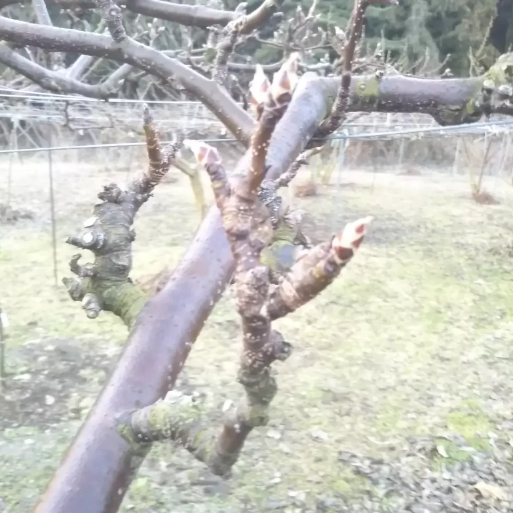 さて、そこで今年の第1回定期防除ですが、JAが配布した通知では、発芽直前の3月23日から発芽前までに実施するようにとなっていました。しかし、今後の天気の予測から判断するに、今日実施する事が最適と判断しました。天気予報ですから変化するかもしれませんが、3月23日以降に雨の日が続くとの予測です。また、梨はもちろん、それよりもやや早めに開花するスモモですが、すでに蕾が膨らんで開花直前という状況です。このまま高い気温が続くと適時を逃しますし、私は勤務もあって今日の春分の日を逃すことはできません。