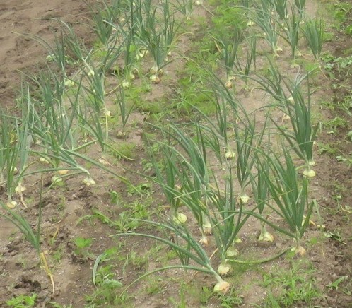 昨年の10月30日から数回に分けて、西の野菜畑にタマネギの苗を植えて育ててきた。今日、ようやく試験採取することにした。