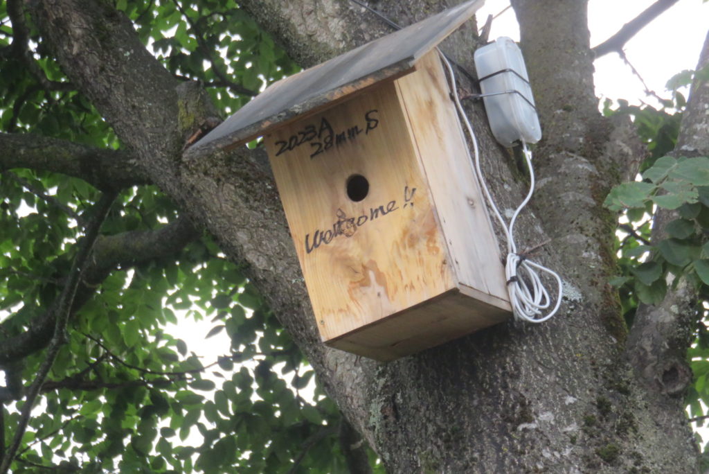 庭の槐(エンジュ)の木に設置していた鳥の巣箱を撤収する時が来た。