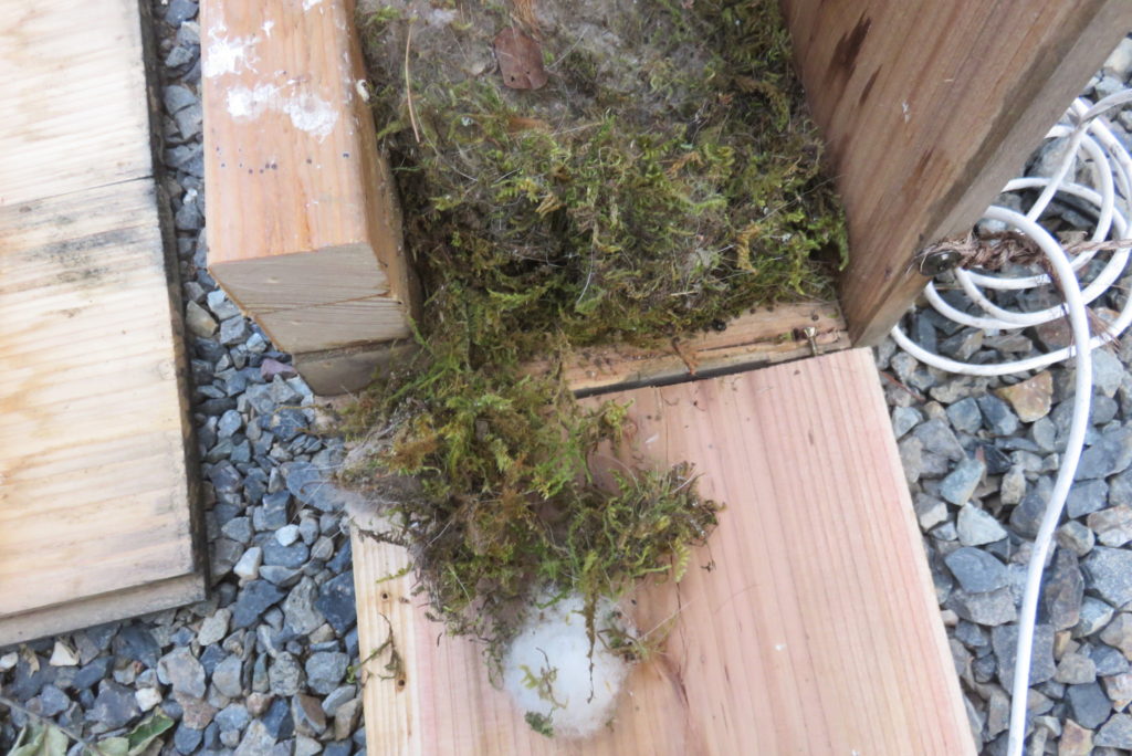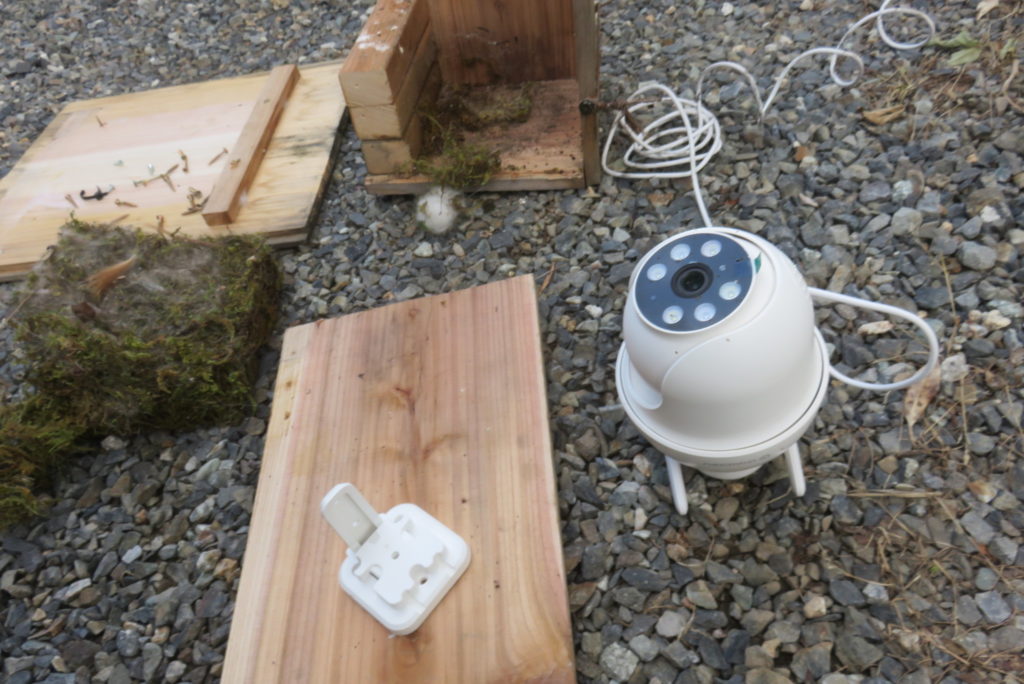 営巣の時期に違いがあり、ヤマガラは昨年の3月下旬から4月上旬に巣作りした。4月1日には雪が降った。シジュウカラが集めたようなコケを調達することがむずかしかったのかもしれない。コケをクッションのようにして、その内部に白いフワフワとした動物の毛らしきものを敷き詰めて、巣皿を作っていた。この白い毛も興味深く、どこから調達したのだろうか。