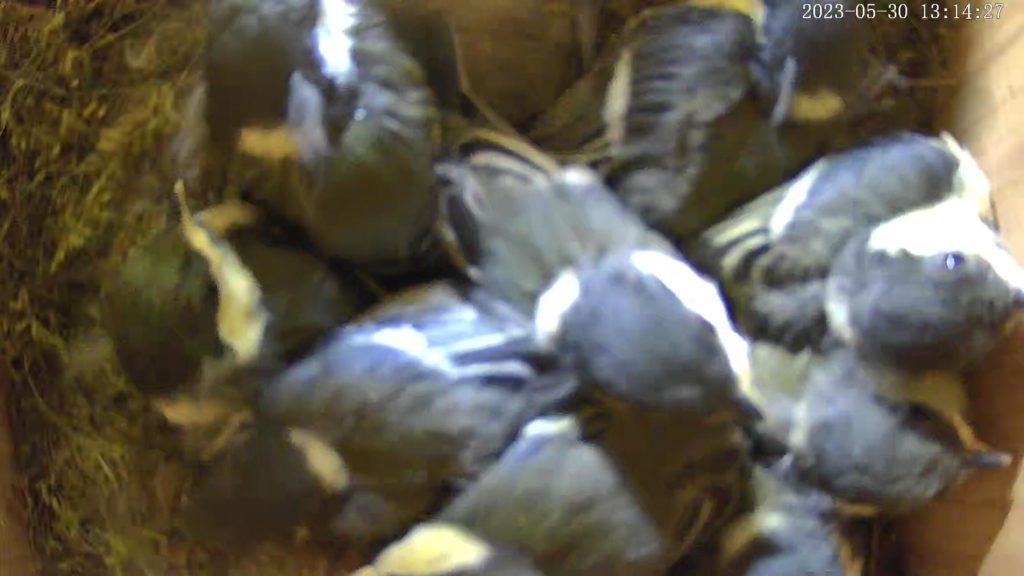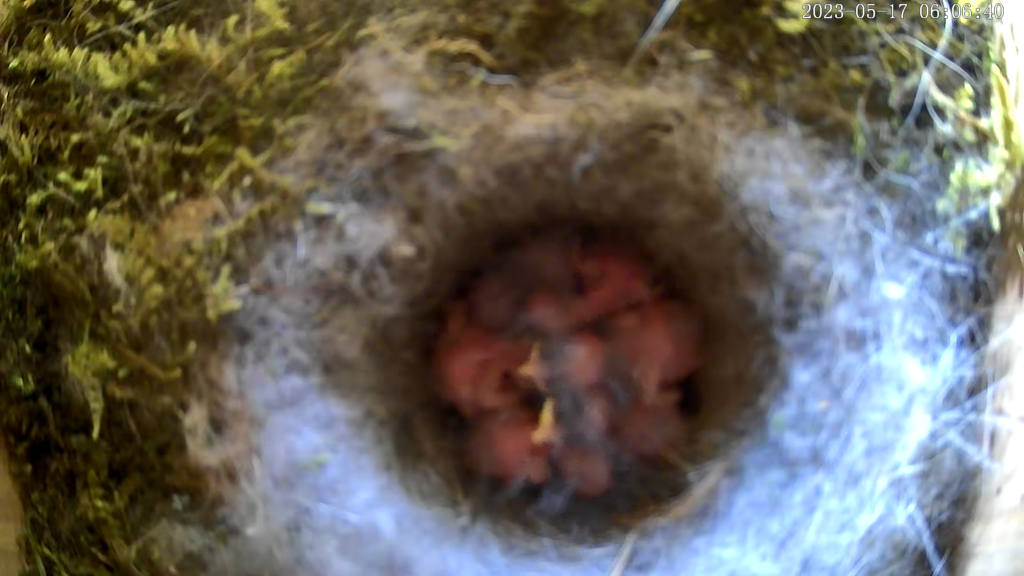 昨年は同じ場所でヤマガラが7羽のヒナを育てた場所で、今年はシジュウカラが10羽のヒナが無事巣立ちを迎え、巣箱の中は空になっている。カメラの映像をチェックすると、徐々に虫たちが侵入してきているようだ。