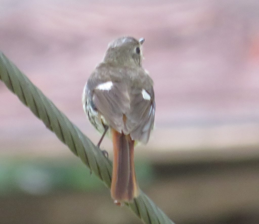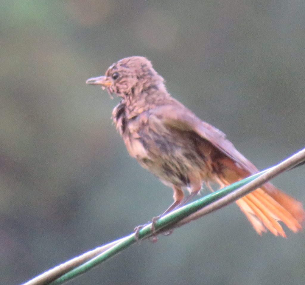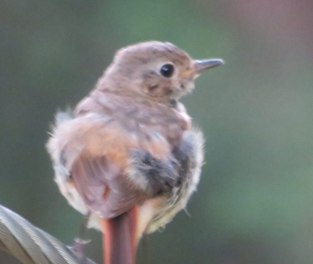 一時は、親子そろっての集団行動だったが、最近はもう単独行動をしているらしく、同時に複数個体を見ることはなくなった。幼鳥ではあるがジョウビタキの特徴を示しているし、動作、鳴き声もジョウビタキそのものだった。元気に水浴びをして水しぶきを飛ばしているものもいたが、羽が濡れる前を見ていないと、ジョウビタキであるかどうかも識別できない。尾羽の下側のオレンジ色が目立つが、これからお腹の部分まで及ぶのか、ずっと経過を見守る事ができればいいのだが。