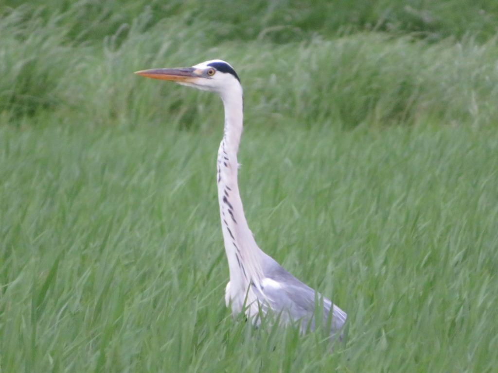 仕事が休みなので、予定していた農作業を進めたいと思うのだが時々激しい雨。雨の中でもできる農作業はあるのだが、仕方なく買い物に出かけると、水田の中でせっせと働くアオサギの集団がいた。