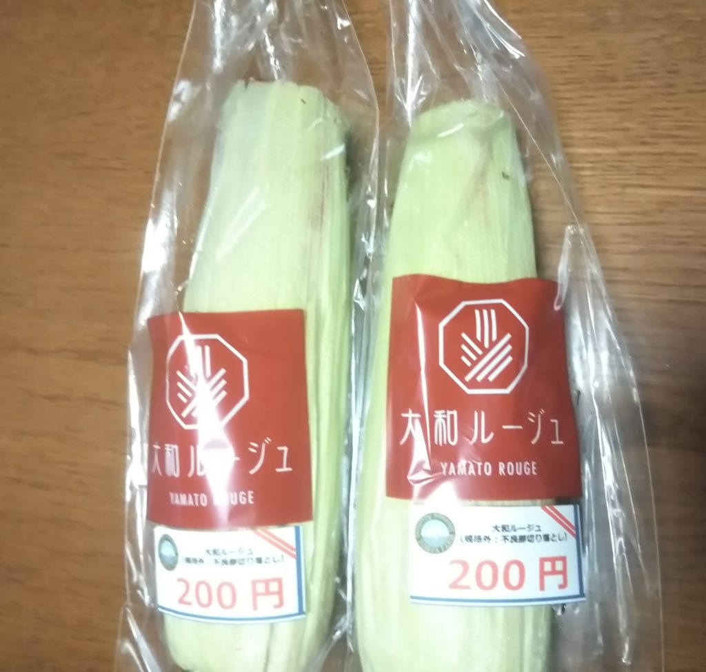 初日に試食として提供したのは、1本を半分に切ったものだったにも関わらず、8月18日の朝には2人の女性社員が「炊き込みご飯にしてみた」として、小さなおにぎりにして職場で配布してくれた。大和ルージュの鮮やかな赤い色は、イチゴの2.5倍といわれるアントシアニンを含んでいて、水溶性であることからヒゲや芯からも抽出できることを利用しての調理方法。朝から職場では大和ルージュの話題で盛り上がっていた事に感激すると同時に、感謝の気持ちでいっぱいだった。