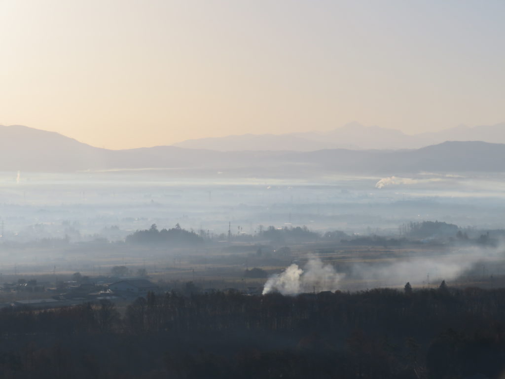 私は愛犬ミルキィーをつれて、でいらぼっちゃの展望台に登ってみた。条件が良ければ富士山も見えるはずだが、ぼんやりかすんでいて見えなかった。