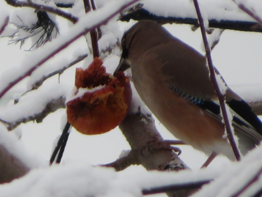ところが、リンゴの木に残された一つのリンゴを食べようとしている場面に遭遇して、ようやく私のバカチョンカメラがとらえてくれた。