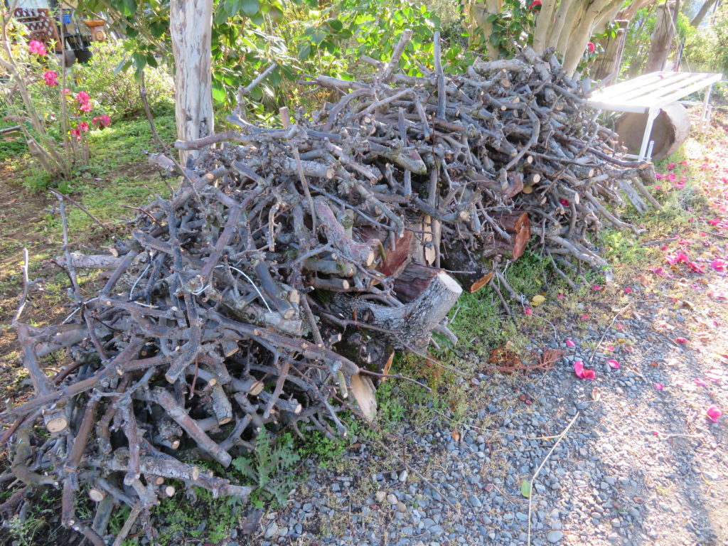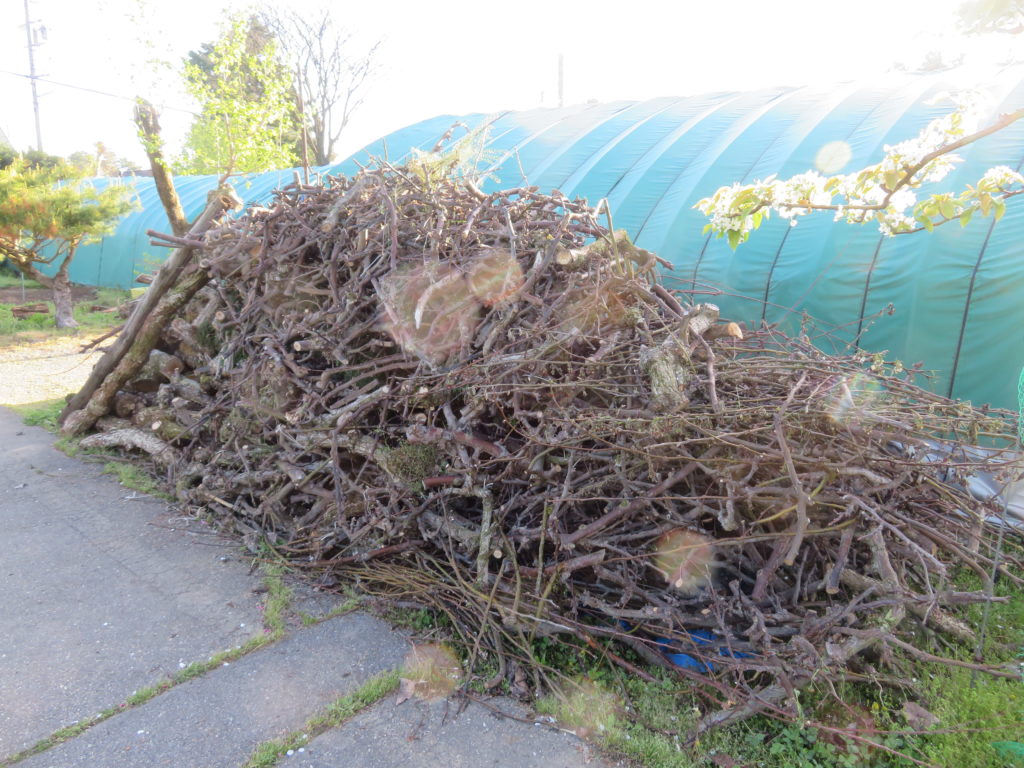冬の間に行った果樹の剪定だが、その剪定木の処理には毎年頭をかかえる。