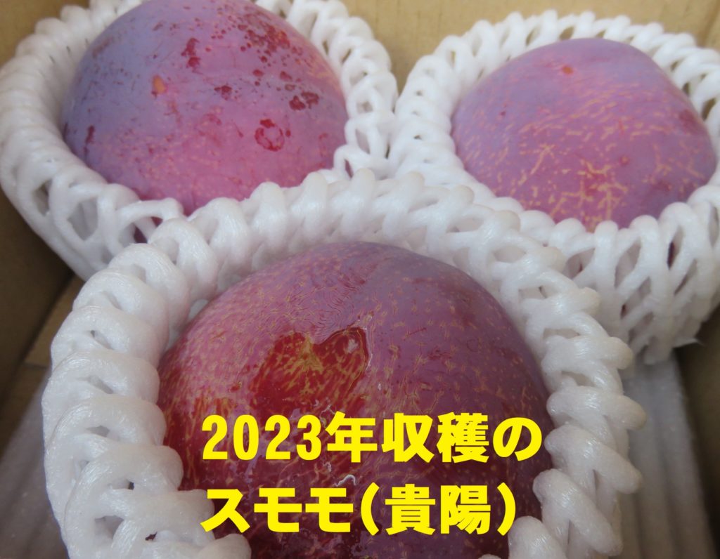 貴陽は、スモモの中でも最大級で1玉が300gを超えるものがあり、ギネスにも登録されているという。多くのスモモは「自家不和合性」。つまり自家受粉せず、自身の雄花の花粉では結実が見込めない。その中でも貴陽は遺伝子が3倍体の変わり者。人口交配してもなお着果率は悪く、また着果が安定せず、着果したとしても収穫に至るまでにはかなりな数を失うのが常だ。