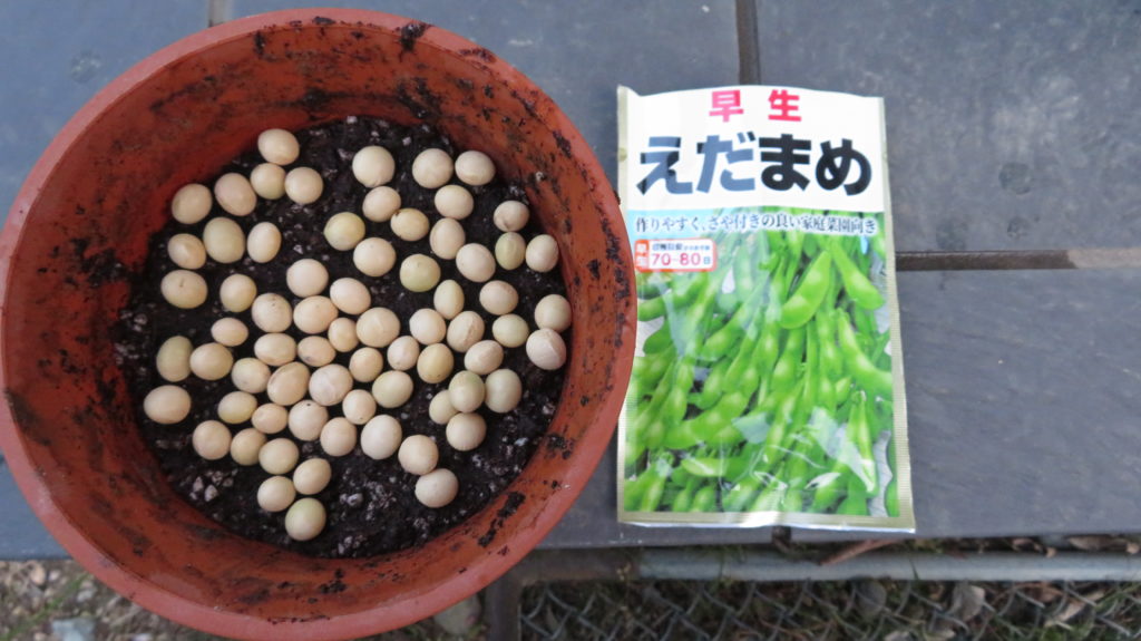 枝豆を植木鉢にまいて、その上には保湿目的でバーミキュライトを薄く乗せた。水やりをして乾燥を防ぎながら第2葉が出るのを待った。
