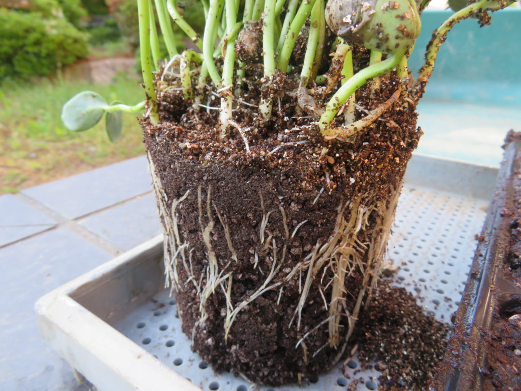 第2葉部分で摘芯すると同時に断根して、用意したポットに挿木して、摘芯した部分が2分して葉が出るのを待った。
