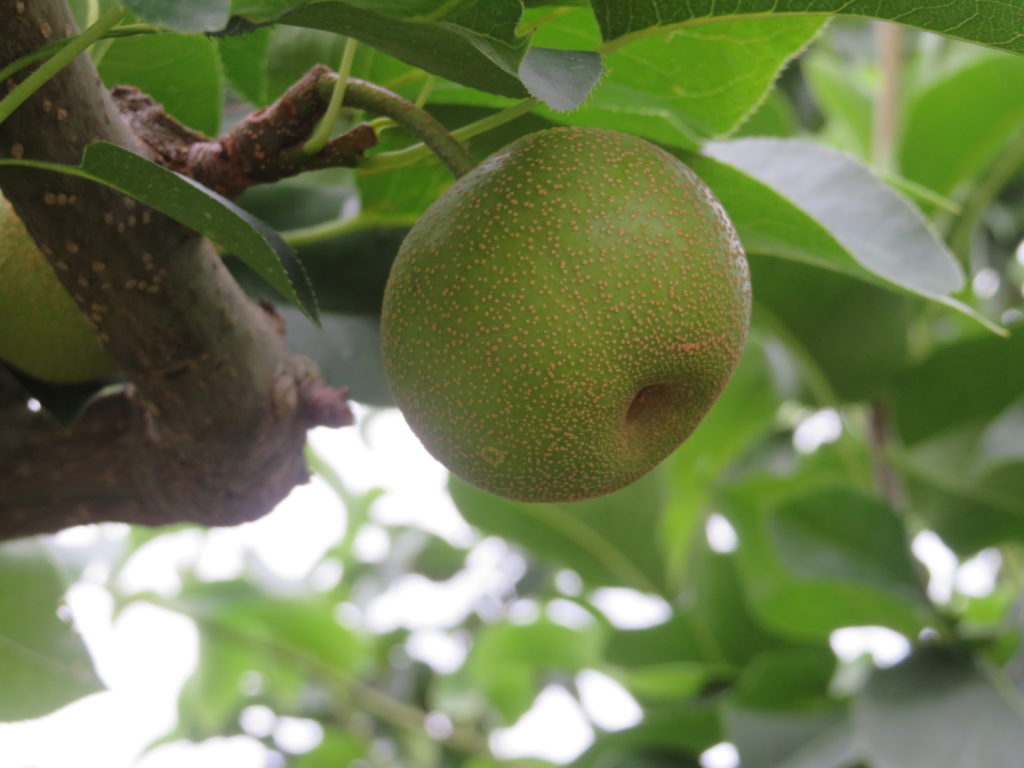 昨年の同時期の記録を見ると、例年よりも梨の進みが早いとしている。しかし、今年も昨年とあまり変わりはないのだが、雨天が長く続くと様子も変わるかもしれないが、はたしてどうか。