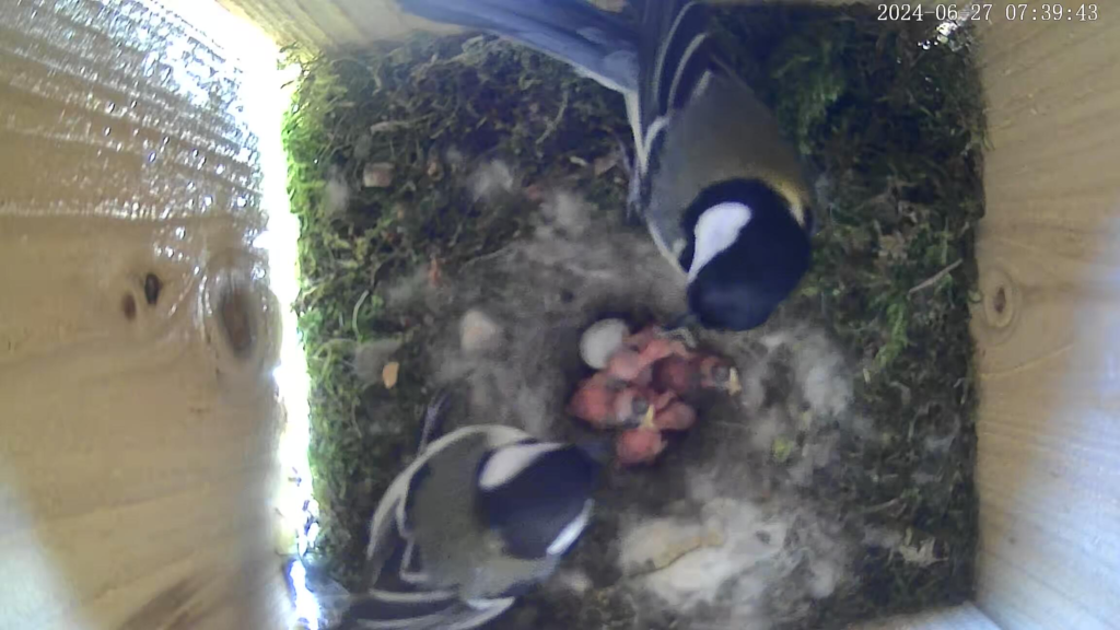 先日投稿したように、シジュウカラが営巣していた巣箱に、7月8日からはスズメがやってきて(シジュウカラのヒナの)給餌をお手伝いしていた。