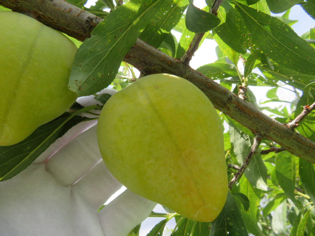 スモモの月光は早生種で、収穫できる状態になっている。晩成種の貴陽は着果率が良かったものの、最近になって落果が目立っている。