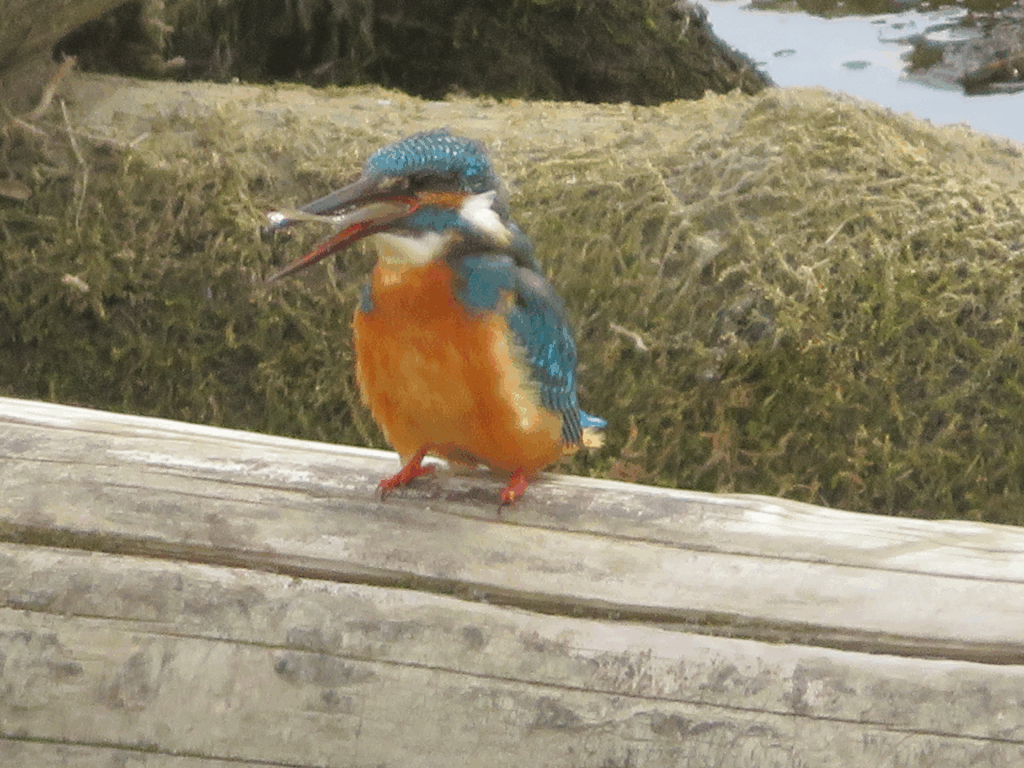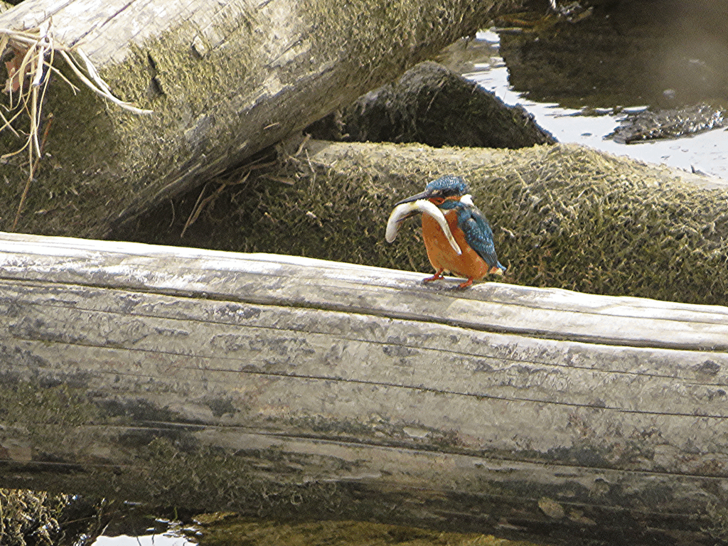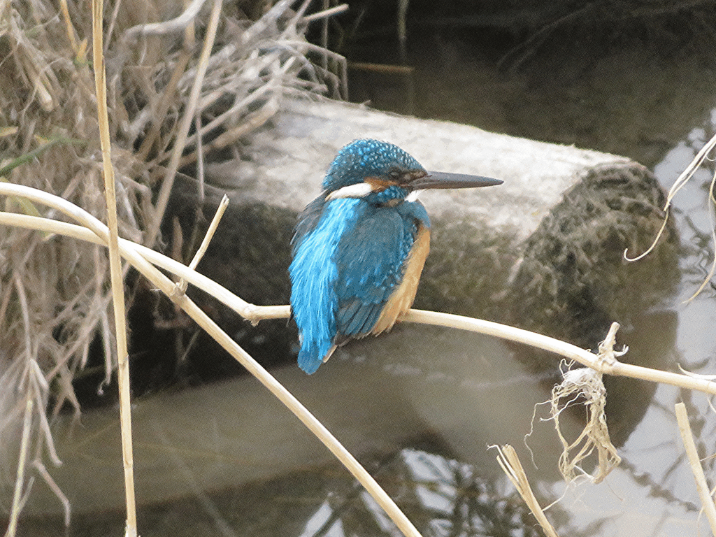 実は光ではなく青い飛翔体で、すぐにカワセミと分かった。水路に流れる水の水面すれすれを、車を抜いて一気に飛び去って行った。「近くに来ているぞ!」とワクワクしていたので、その後は、その付近を通るたびに気にかけていた。