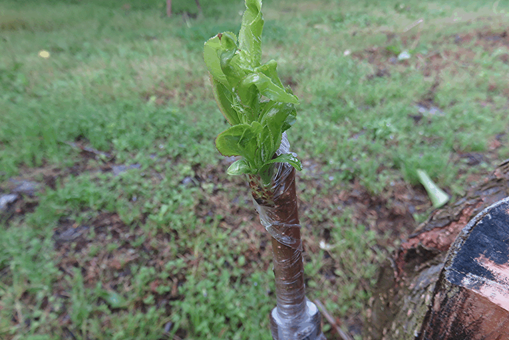 すでに月光や太陽の剪定を終えたが、貴陽を見上げるとその作業量を考える時、うれしいようなぞっとするような複雑な気持ちになる。しかし、一昨年月光に接ぎ木した貴陽の枝は、その性質のおかげというべきか、急速な成長を遂げた。接ぎ木をして2年目の枝にはたくましさを感じ、期待が膨らむ。