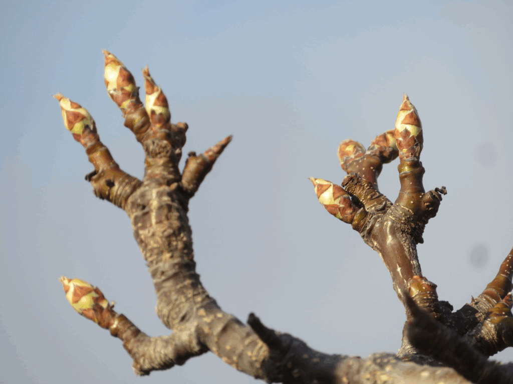 園地の梨もスモモもキウイもブルーベリーも新芽が膨らんできた。まだ剪定の仕上げを残す部分もあるが、これから一斉に開花の時期を迎える。地域では4月6日には堰普請をするとの通知があった。水路に堆積したゴミや土砂を取り除いて水の流れを待つ。