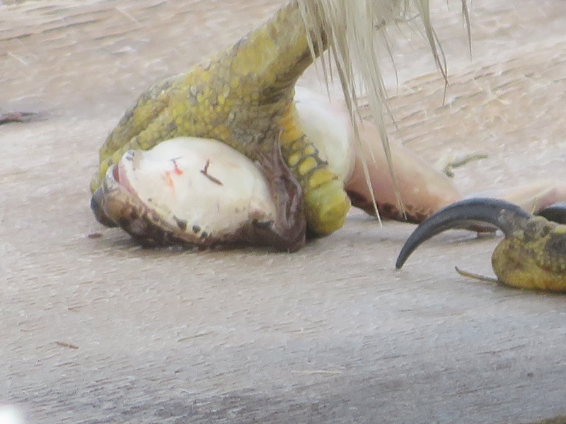 なんとも豪快な食べっぷり。他のカラスなどに邪魔されることを恐れたのか、すばやく決着をつけたかったようだ。通常ならば警戒して高い木の上などに獲物を持って行って食べるところだったと思うが、まじかで観察できた私はラッキーだった。