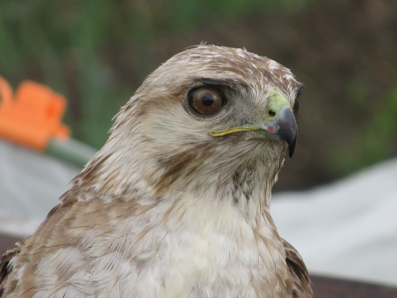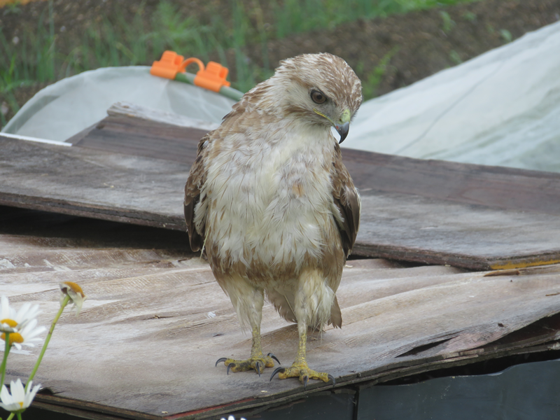カメラを向けていると、さすがに猛禽類のノスリは私に気づいてカメラ目線になったが、獲物を逃がすのも惜しかったようだ。逃げることはなく、カエルをつかんで戻ると鋭いくちばしでバラそうとする。しかし、うまくいかず、結局はまるごとゴクリと呑み込んでしまった。