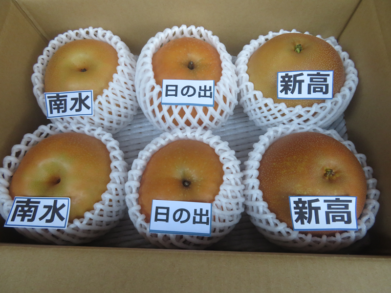 玉の大小もあるが、5㎏でも多いというお客様もいる。お客様の用途・目的というものもあろうかと思い、2Kg、3Kg程度の包装も用意すべきと考えた。また、写真にもあるように、以前からお客様には、「お客様の好みの梨を発見してください」と提案しながら「利き梨セット」の販売をしてきた。