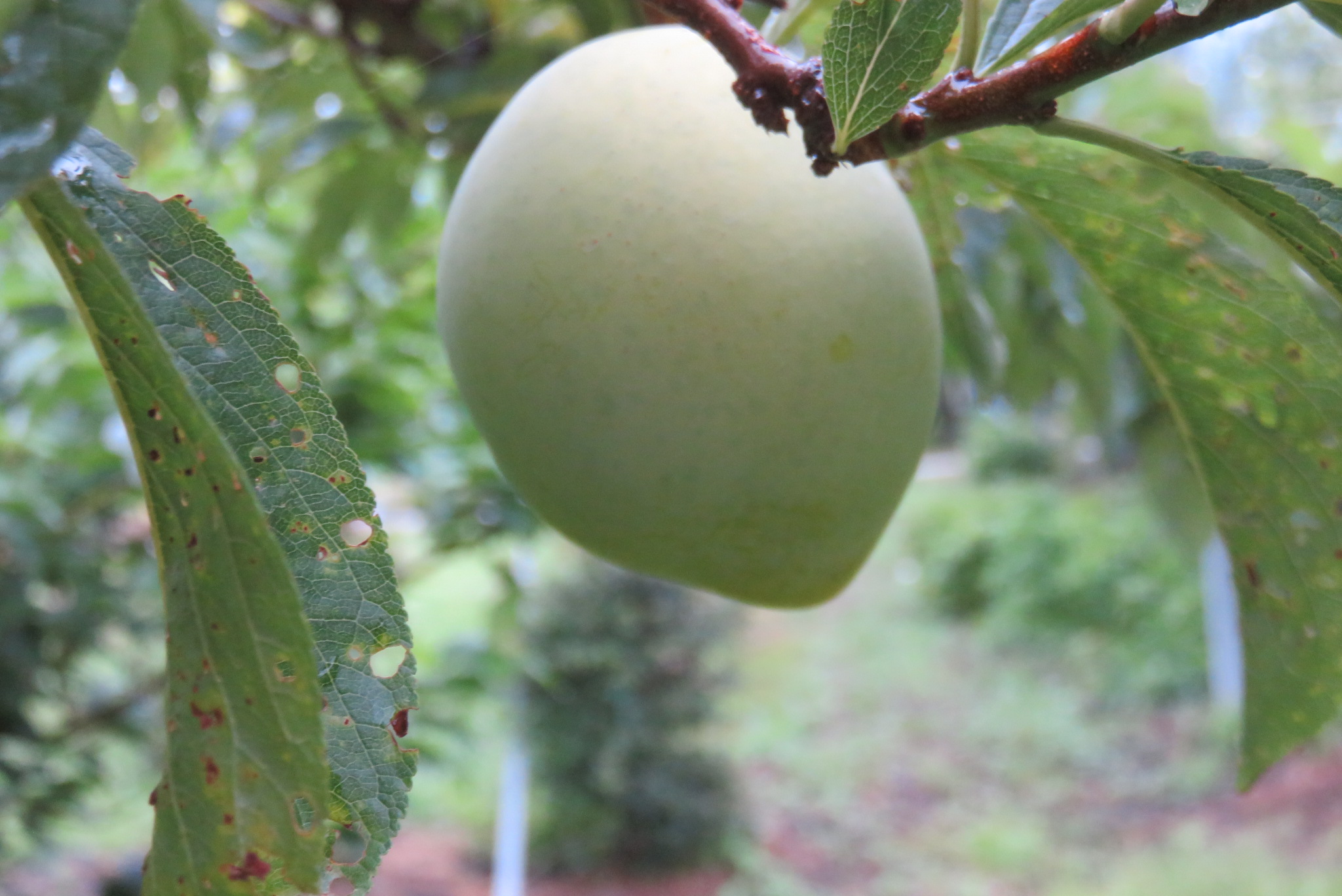 当園の貴陽は苗を植えてから3年が経過した。昨シーズンはいくつか実をつけたが、熟すことなくすべて落果してしまった。今シーズンは2本の木に現在も数十個程度実をつけたまま色づいている。 すももの中でも貴陽の樹勢はかなり強く ...