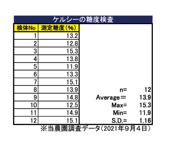当園で今シーズンに収穫できたスモモの品種は、早生の月光と晩成のケルシーだ。来シーズンは「太陽」と「貴陽」が加わる予定。月光の糖度測定結果についてはすでに掲載していた。ケルシーの苗を植えたのは月光に遅れて約1年半、201 ...